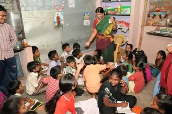 In one of the narrow alleys of Korrukupet in North Chennai, where houses have been built so close to each other that you would think they had common walls, and front doors of houses open to the street, around 40 children are huddled in a 50 sq ft asbestos roofed room on the first floor of a multi-tenanted building.